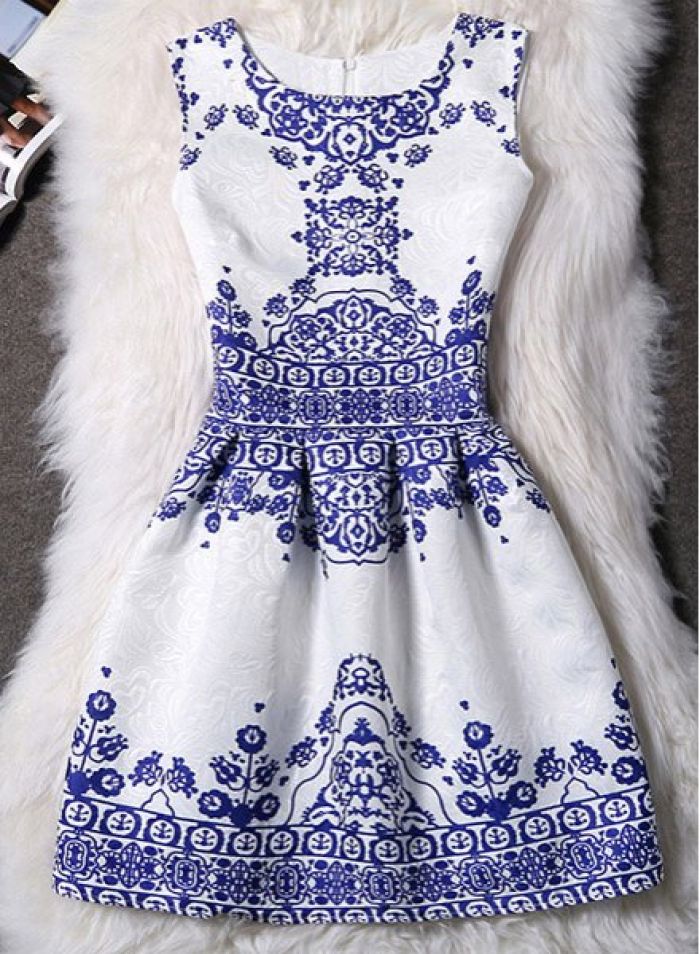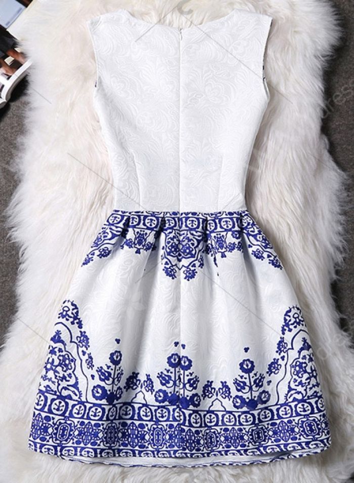 Elegant Round Neck Sleeveless Printed Jacquard Dress For Women