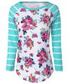 Fresh Stripe Floral Print Long Raglan Sleeve T-Shirt