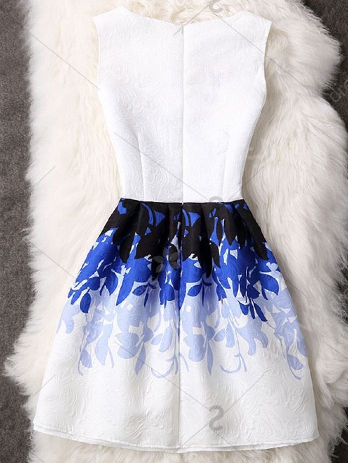 Leaves Pattern Waisted Zippered Dress