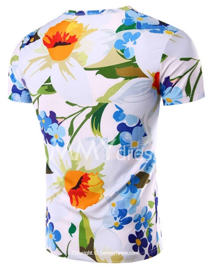 Round Neck Floral 3D Print Pattern Short Sleeve Men's T-Shirt